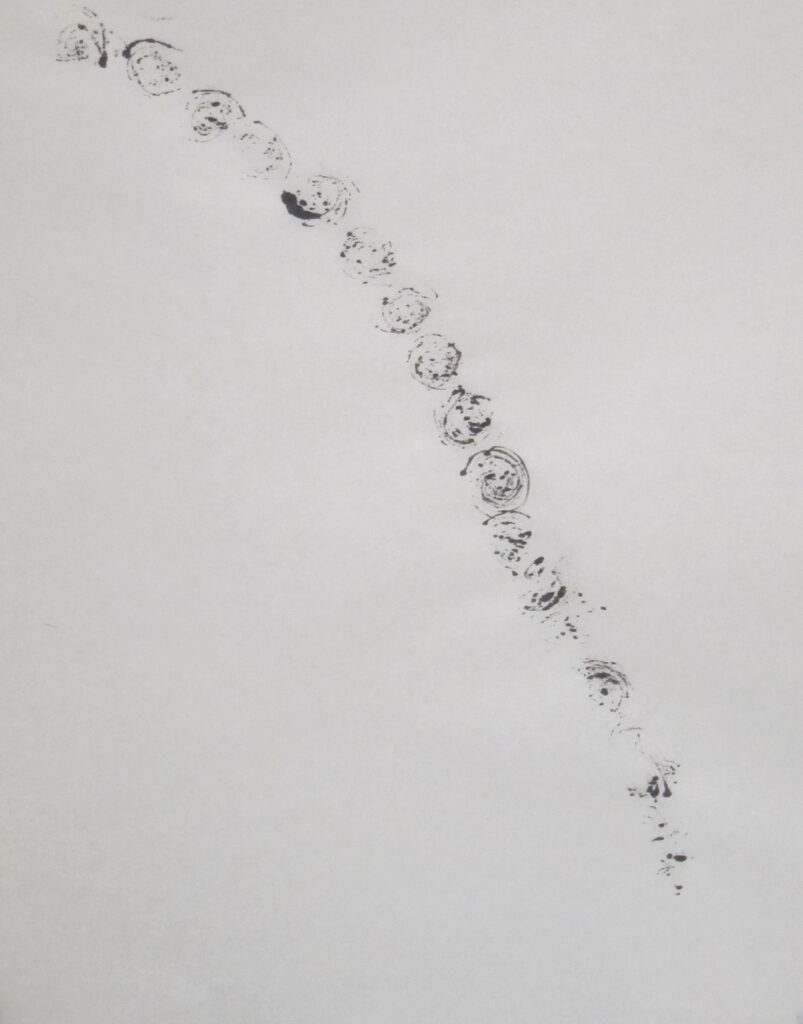 During Studios Switch I have been developing my Kanji idea physically and visually. I learned the speed of charcoal ink soaking into paper is such a quick motion, like a synapse reacting in our body. The process of creating choreography can proceed on paper through black ink, fiber of paper and brush moves. Japanese calligraphy is living in my long term memory. It was natural to discover rhythms in characters and use them to add another dimension to body movement, although what I was most inspired by was hearing impressions and comments from visitors who did calligraphy with me at Studios Switch.